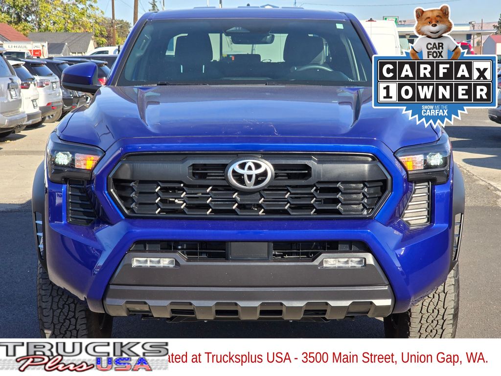 Recent Arrival! Blue 2025 Toyota Tacoma TRD Off-Road 2.4L 4-Cylinder 8-Speed Automatic 4WD 4D Double Cab 4WD, 3.583 Axle Ratio, 4-Wheel Disc Brakes, 6 Speakers, ABS brakes, Air Conditioning, Alloy wheels, AM/FM radio: SiriusXM, Anti-whiplash front head restraints, Apple CarPlay/Android Auto, Auto High-beam Headlights, Auto-dimming Rear-View mirror, Automatic temperature control, Brake assist, Bumpers: body-color, Driver door bin, Driver vanity mirror, Dual front impact airbags, Dual front side impact airbags, Electronic Stability Control, Emergency communication system: Safety Connect (1-year trial), Exterior Parking Camera Rear, Fabric Seat Trim, Four wheel independent suspension, Front anti-roll bar, Front Bucket Seats, Front Center Armrest, Front fog lights, Front reading lights, Fully automatic headlights, Heated door mirrors, Illuminated entry, JBL Premium Audio, Knee airbag, Leather Shift Knob, Leather steering wheel, Low tire pressure warning, Occupant sensing airbag, Outside temperature display, Overhead airbag, Overhead console, Panic alarm, Passenger door bin, Passenger vanity mirror, Power door mirrors, Power steering, Power windows, Radio: 8" Toyota Audio Multimedia, Rear step bumper, Rear window defroster, Remote keyless entry, Security system, SofTex Seat Trim, Speed control, Speed-sensing steering, Split folding rear seat, Steering wheel mounted audio controls, Tachometer, Telescoping steering wheel, Tilt steering wheel, Traction control, Trip computer, Turn signal indicator mirrors, Variably intermittent wipers, Wheels: 17" TRD Off-Road Alloy, 4WD.