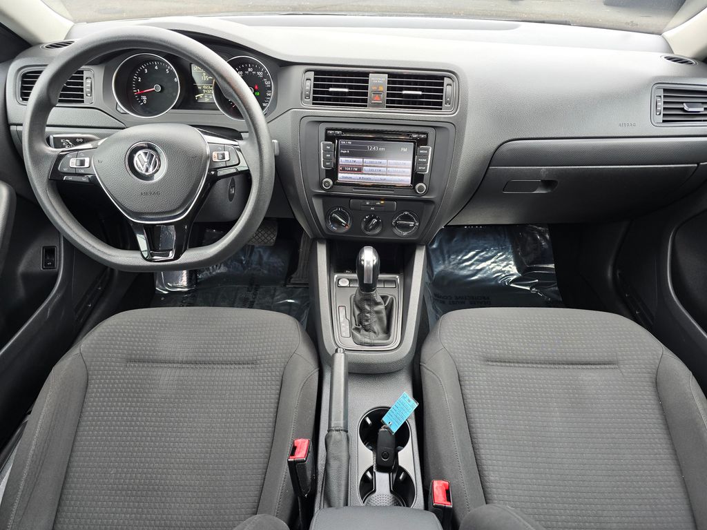Recent Arrival! Clean CARFAX. Reflex Silver Metallic 2015 Volkswagen Jetta 2.0L S w/Technology 2.0L I4 SOHC 6-Speed Automatic with Tiptronic FWD 4D Sedan Black Cloth, 15" Steel Wheels w/Full Covers, 4 Speakers, 4-Wheel Disc Brakes, ABS brakes, Air Conditioning, AM/FM radio, Brake assist, Bumpers: body-color, CD player, Cloth Seat Trim, Driver door bin, Driver vanity mirror, Dual front impact airbags, Dual front side impact airbags, Electronic Stability Control, Exterior Parking Camera Rear, First Aid Kit, Front anti-roll bar, Front Bucket Seats, Front Center Armrest, Front reading lights, Front wheel independent suspension, Heated door mirrors, Heavy Duty Trunk Liner w/CarGo Blocks, Illuminated entry, Low tire pressure warning, Occupant sensing airbag, Outside temperature display, Overhead airbag, Overhead console, Panic alarm, Passenger door bin, Passenger vanity mirror, Power door mirrors, Power steering, Power windows, Radio data system, Radio: Premium VIII Touchscreen w/6-CD, Rear anti-roll bar, Rear reading lights, Rear window defroster, Remote keyless entry, Rubber Mat Kit, Speed control, Split folding rear seat, Steering wheel mounted audio controls, Tachometer, Telescoping steering wheel, Tilt steering wheel, Traction control, Trip computer, Variably intermittent wipers, Black Cloth.