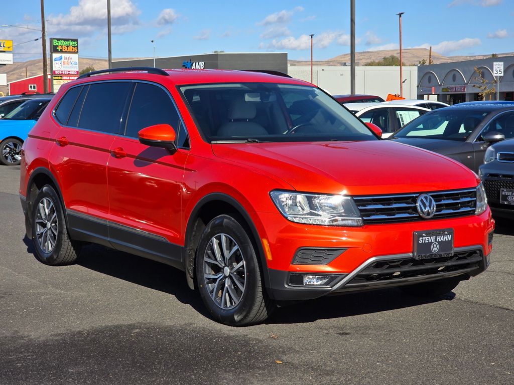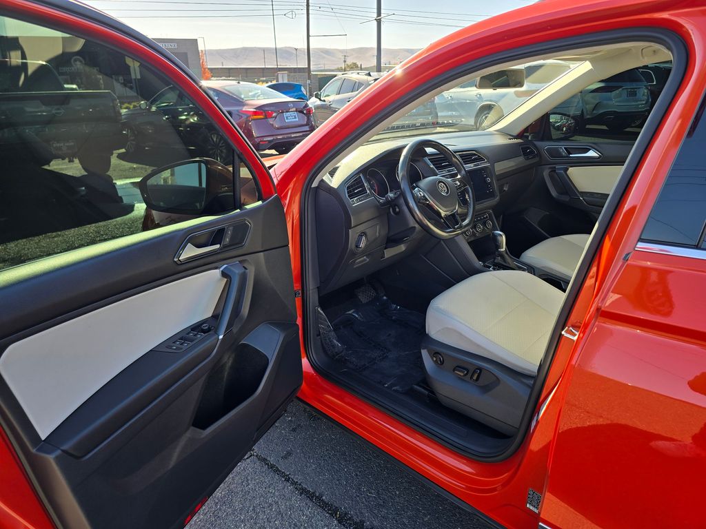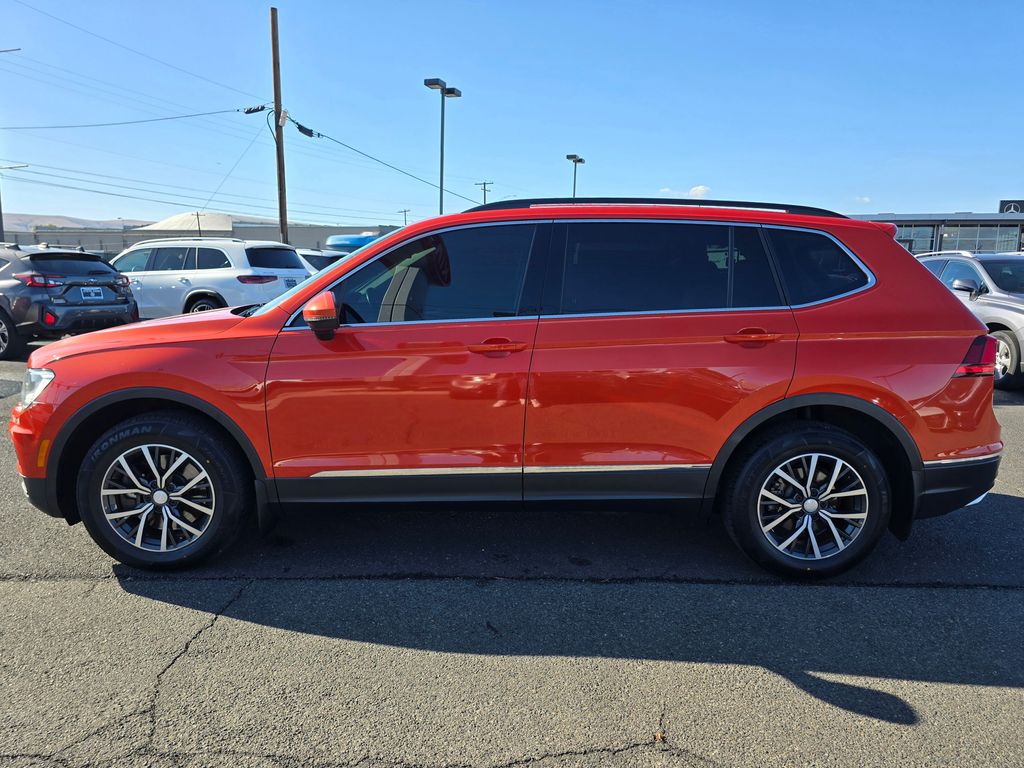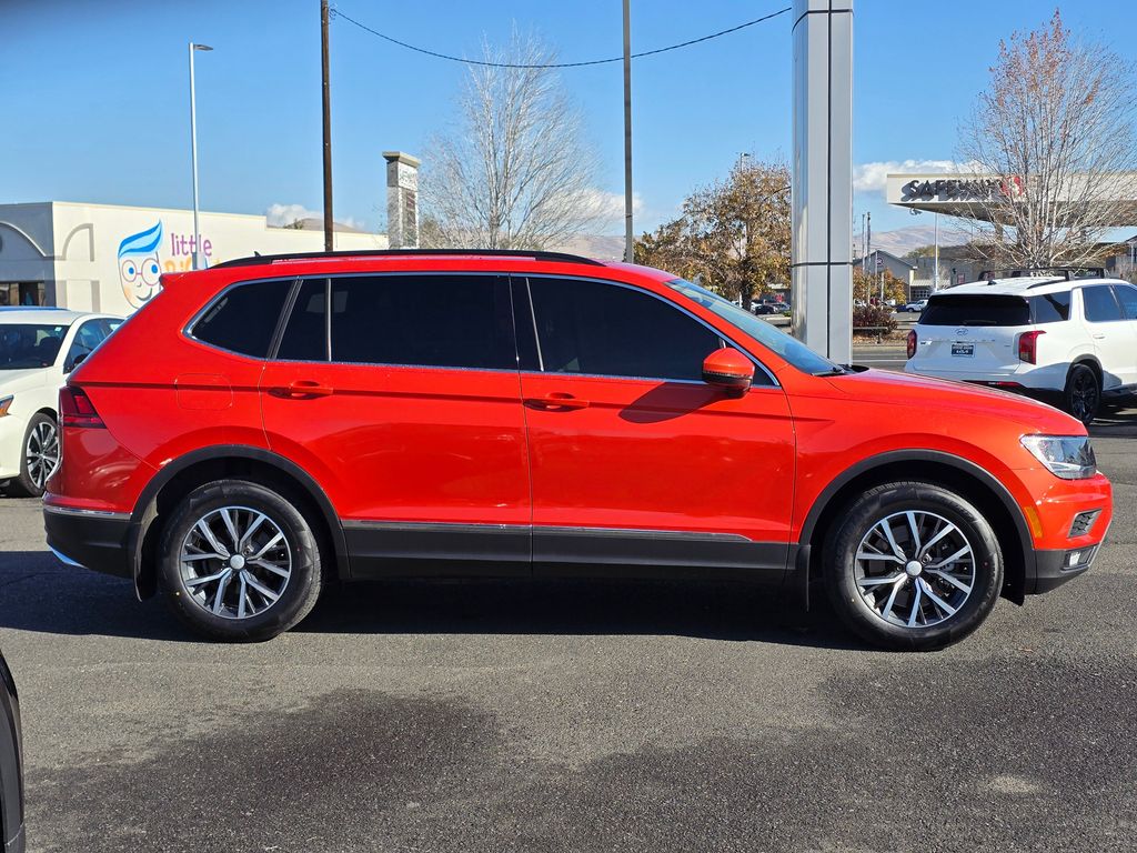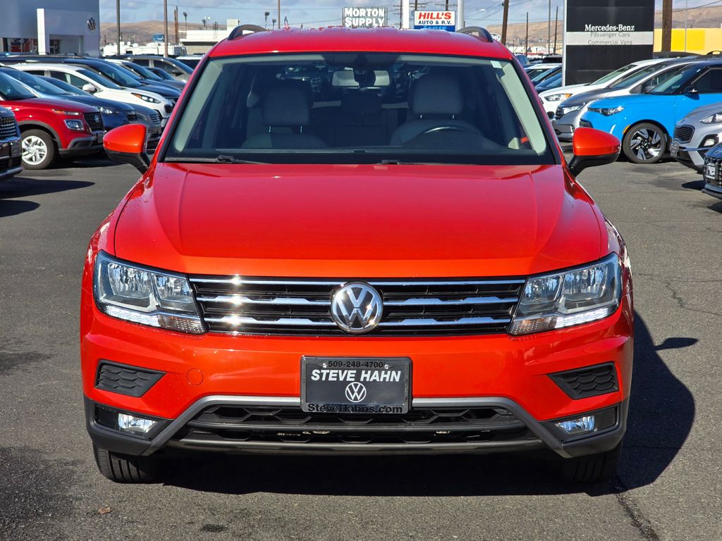 Recent Arrival! Clean CARFAX. Orange Metallic 2018 Volkswagen Tiguan 2.0T SE 4Motion 2.0L TSI DOHC 8-Speed Automatic with Tiptronic AWD 4D Sport Utility AWD, 2-Row Rubber Mats Kit, 3.33 Axle Ratio, 4-Wheel Disc Brakes, 6 Speakers, ABS brakes, Air Conditioning, Alloy wheels, AM/FM radio: SiriusXM, Automatic temperature control, Brake assist, Bumpers: body-color, Compass, Delay-off headlights, Driver door bin, Driver vanity mirror, Dual front impact airbags, Dual front side impact airbags, Electronic Stability Control, Emergency communication system: VW Car-Net, Exterior Parking Camera Rear, First Aid Kit, Four wheel independent suspension, Front anti-roll bar, Front Bucket Seats, Front Center Armrest, Front dual zone A/C, Front reading lights, Fully automatic headlights, Heated door mirrors, Heated Front Bucket Seats, Heated front seats, Illuminated entry, Leather Shift Knob, Low tire pressure warning, Luggage Net, Occupant sensing airbag, Outside temperature display, Overhead airbag, Overhead console, Panic alarm, Passenger door bin, Passenger vanity mirror, Perforated V-Tex Leatherette Seating Surfaces, Power door mirrors, Power driver seat, Power steering, Power windows, Radio data system, Radio: AM/FM/HD/CD w/Dual USB & Aux-In, Rear anti-roll bar, Rear reading lights, Rear seat center armrest, Rear window defroster, Rear window wiper, Remote CD player, Remote keyless entry, Roadside Assistance Kit, Roof rack: rails only, Speed control, Speed-sensing steering, Split folding rear seat, Spoiler, Steering wheel mounted audio controls, Tachometer, Telescoping steering wheel, Tilt steering wheel, Traction control, Trip computer, Turn signal indicator mirrors, Variably intermittent wipers, Wheels: 17" Tulsa, AWD.