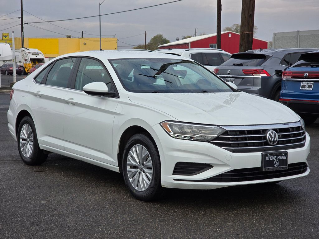 Recent Arrival! White 2019 Volkswagen Jetta 1.4L TSI 8-Speed Automatic with Tiptronic FWD 4D Sedan 4 Speakers, 4-Wheel Disc Brakes, ABS brakes, Air Conditioning, Alloy wheels, AM/FM radio, Brake assist, Bumpers: body-color, Delay-off headlights, Driver door bin, Driver vanity mirror, Dual front impact airbags, Dual front side impact airbags, Electronic Stability Control, Exterior Parking Camera Rear, Front anti-roll bar, Front Bucket Seats, Front Center Armrest, Front wheel independent suspension, Fully automatic headlights, Illuminated entry, Low tire pressure warning, Occupant sensing airbag, Outside temperature display, Overhead airbag, Panic alarm, Passenger door bin, Passenger vanity mirror, Power door mirrors, Power steering, Power windows, Radio data system, Radio: Composition Color w/6.5" Touchscreen, Rear anti-roll bar, Rear reading lights, Rear window defroster, Remote keyless entry, Speed control, Speed-sensing steering, Split folding rear seat, Steering wheel mounted audio controls, Tachometer, Telescoping steering wheel, Tilt steering wheel, Traction control, Trip computer, Variably intermittent wipers.
